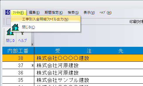 ハウロードシリーズなら、ボタン操作で簡単に工事別入金明細ファイルを出力できます。